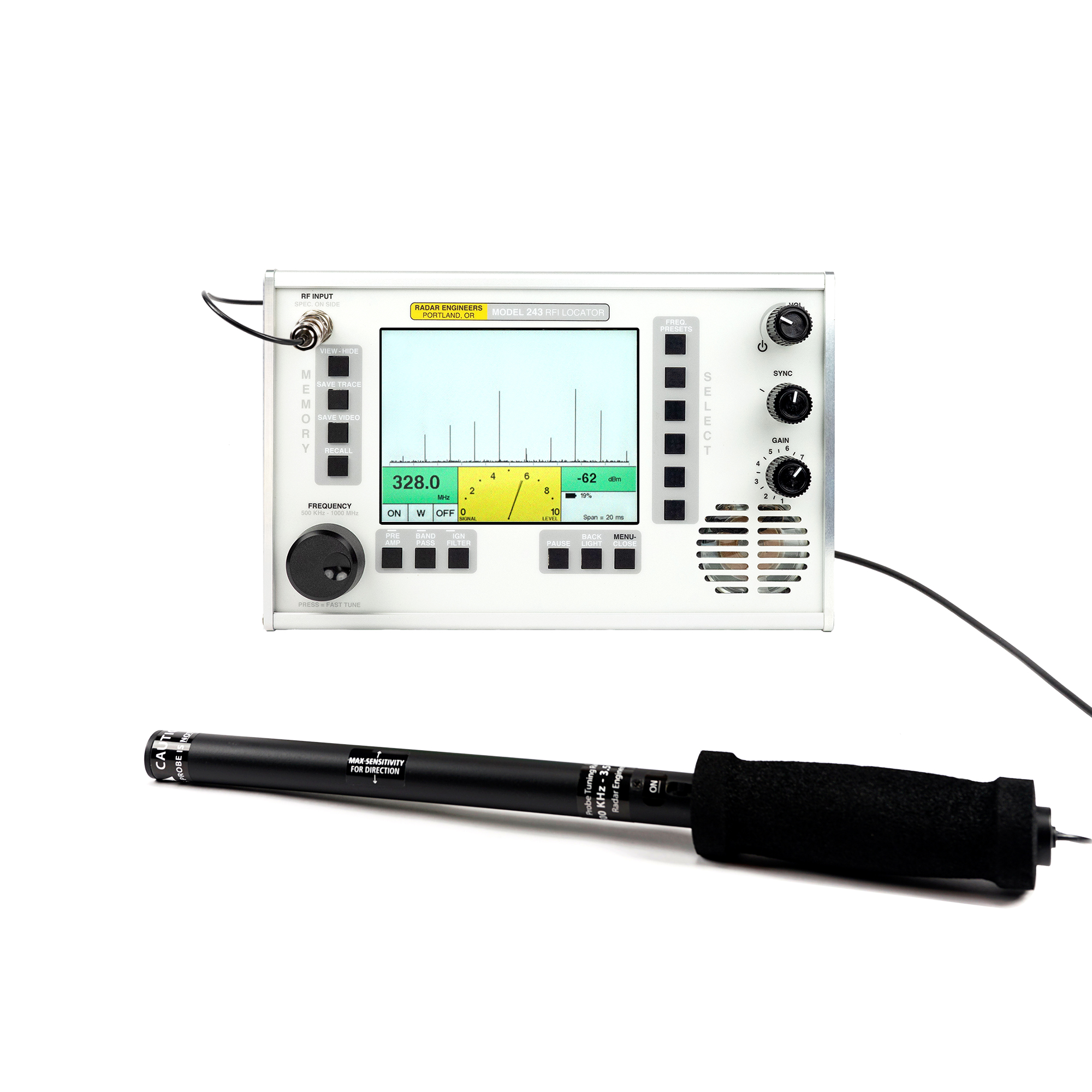 Designed for demanding field environments, the 243 arrives mission-ready with a carrying case, battery charger, mag-mount whip antenna, hand held directional antenna, and AM probe. Built for professionals who demand precision, the model 243 transforms RFI detection into a faster, smarter, and more decisive operation.