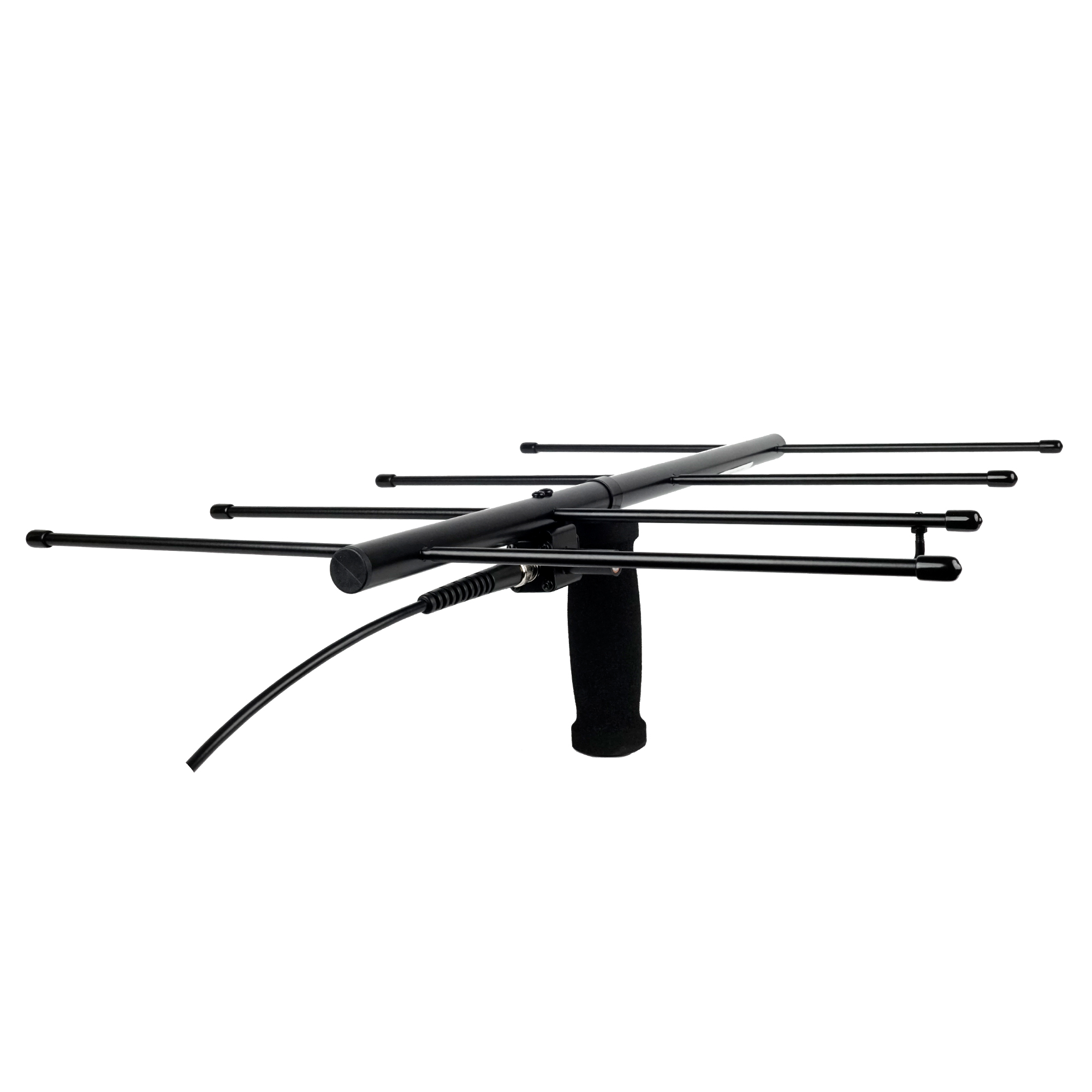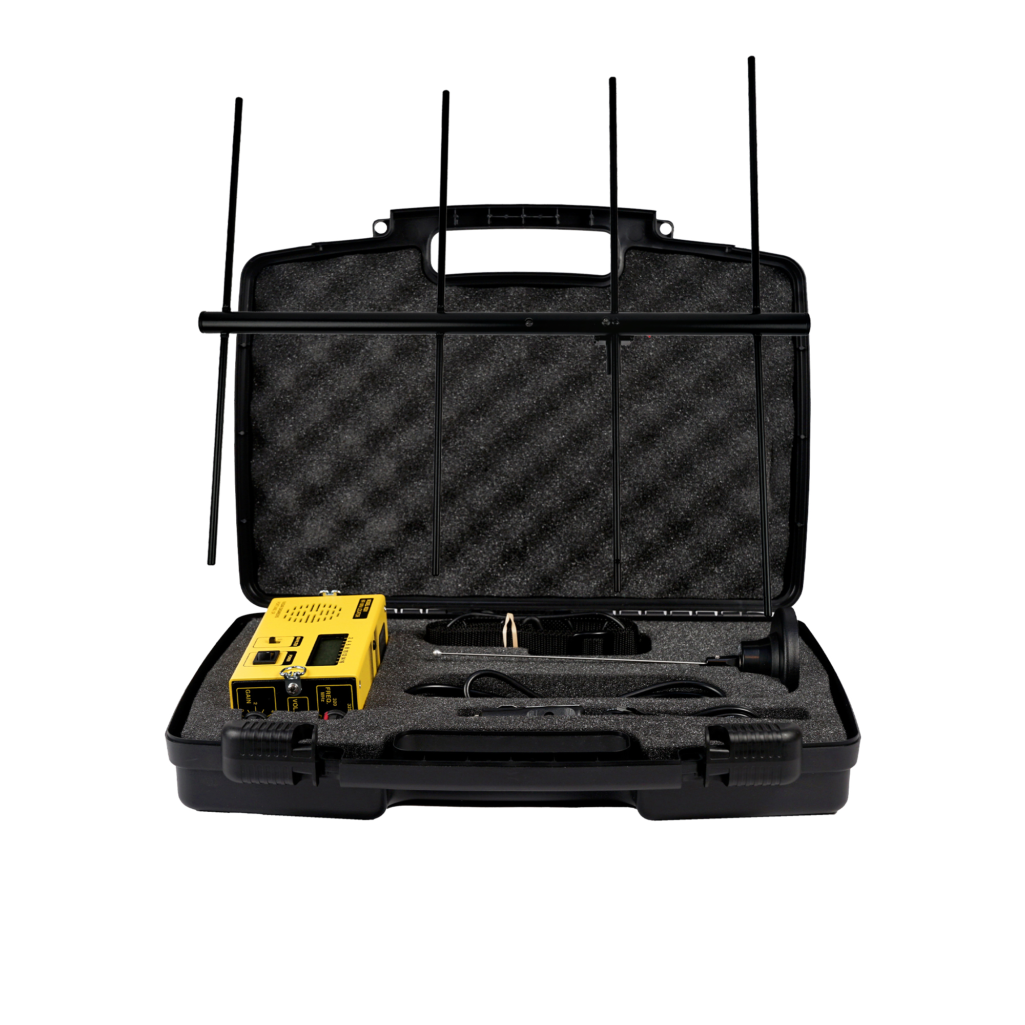 Frequency and gain controls allow users to fine-tune signal reception. The included four-element Yagi antenna provides increased gain and accurate direction finding. Technicians begin by driving through the area with the magnetic-mount whip antenna on the vehicle, listening for characteristic RFI noise. Once the general location is identified, the handheld Yagi antenna is used to isolate the source by comparing signal strength. The pole with the strongest noise level indicates the interference origin.